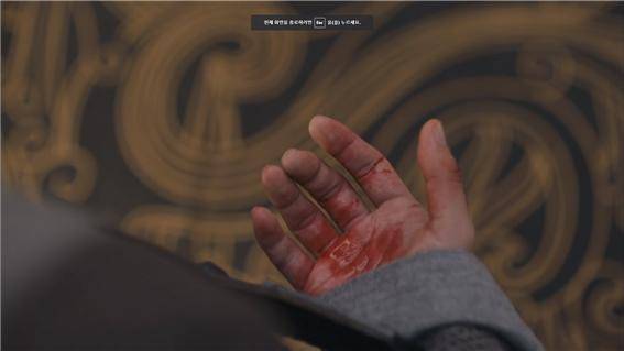 자신이 내뱉은 피가 묻은 손을 보며